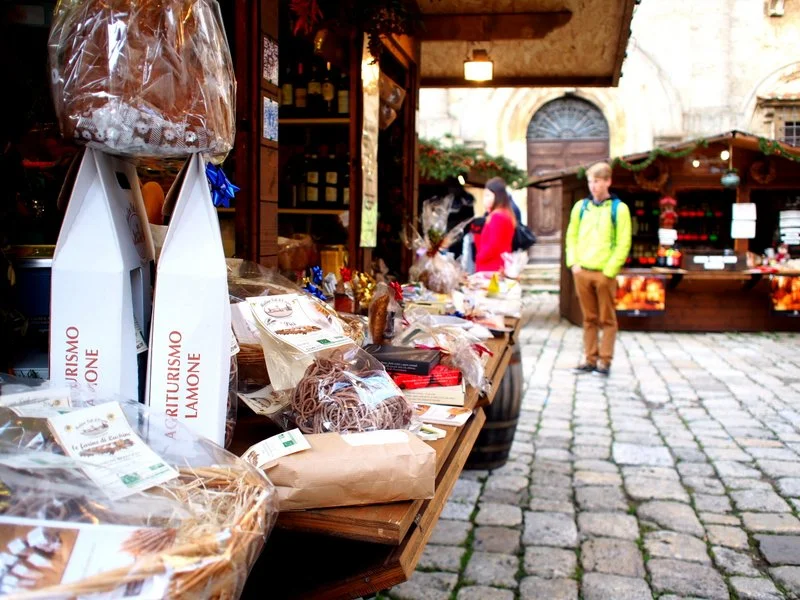 We arrived in Orvieto around 3:00 and quickly found a place to park. The wind was whipping and it was cool, so we quickly found a place for a coffee and a cup of hot chocolate - both were great. Orvieto is a really quaint town and it was nicely decorated for the holidays. In addition the town was hosting an international jazz festival so it was really busy.